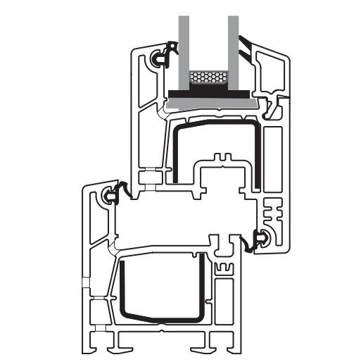 Рама и створка являются трехкамерными профилями. Воздух во внутренних камерах обеспечивает высокую теплозащиту. Для усиления противовзломности в третьей камере створки организованы специальные наплывы для крепления петлевой группы